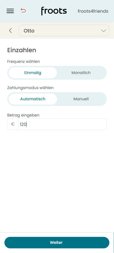 Im Kundenportal sind sämtliche Transaktionen transparent dargestellt. Ich habe für meinen Sohn keinen festen Sparplan. Ich zahle flexibel ein. Im Portal kann ich Einzahlungen bis 40.000 EUR direkt durchführen, alles darüber manuell über IBAN. Auch Großeltern oder andere Familienmitglieder können Geldgeschenke einfach auf denselben IBAN überweisen, die dann in weiterer Folge investiert werden.