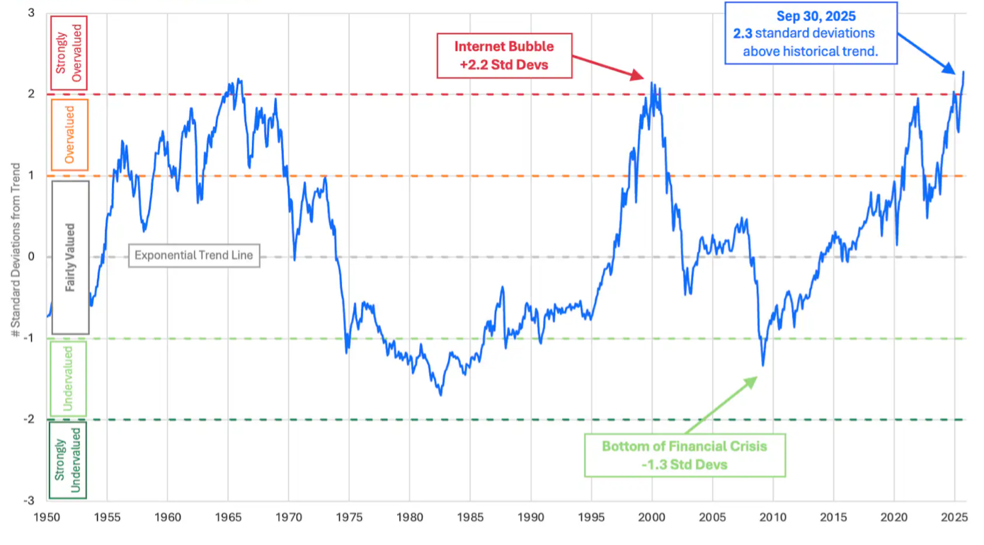 Das ist kein Timing-Instrument, sondern ein Gesetz der Wahrscheinlichkeiten. Steigende Preise - bei gleichbleibenden Fundamentaldaten - sind oft „von der Zukunft geborgte Renditen“. Man kann diese Schwerkraft eine Zeit lang ignorieren, aber je weiter man sich entfernt, desto mehr muss in Zukunft perfekt laufen, damit der Preis gerechtfertigt bleibt. Die Fallhöhe steigt.