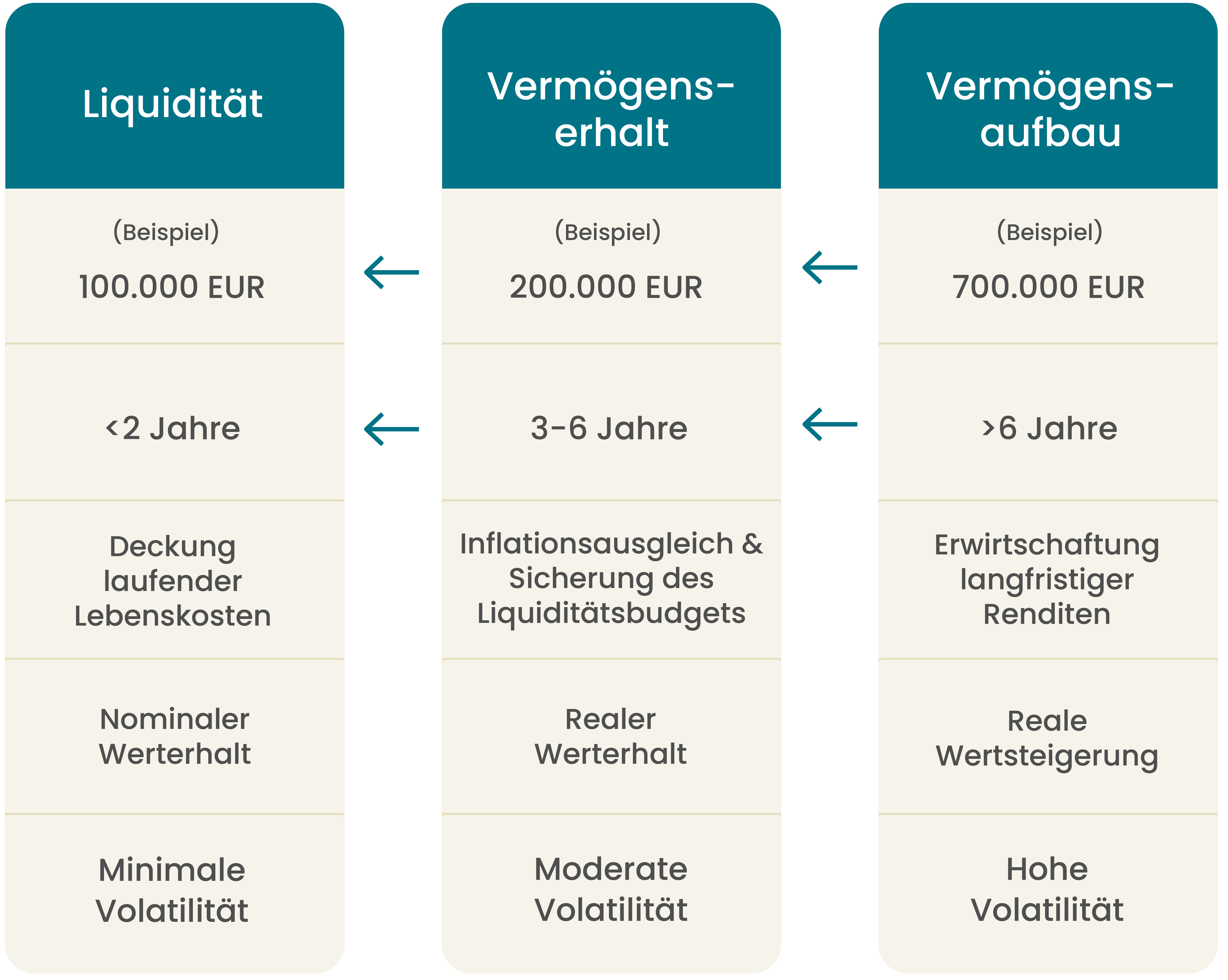Wenn du mehr darüber erfahren möchtest, wie wir dir helfen, dein Vermögen über verschiedene Zeithorizonte zu strukturieren, schau dir unsere Lösung Vermögen strukturieren an.